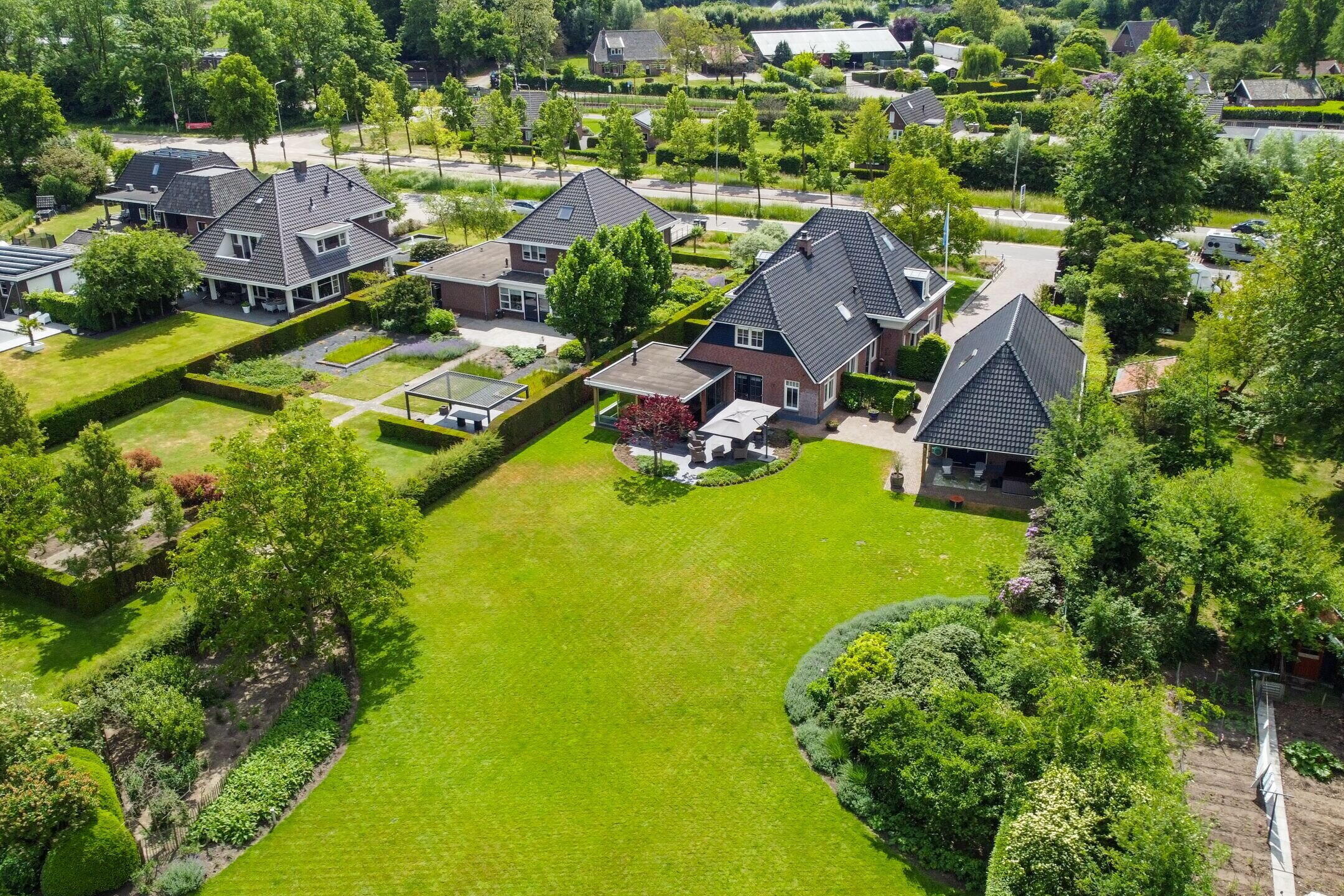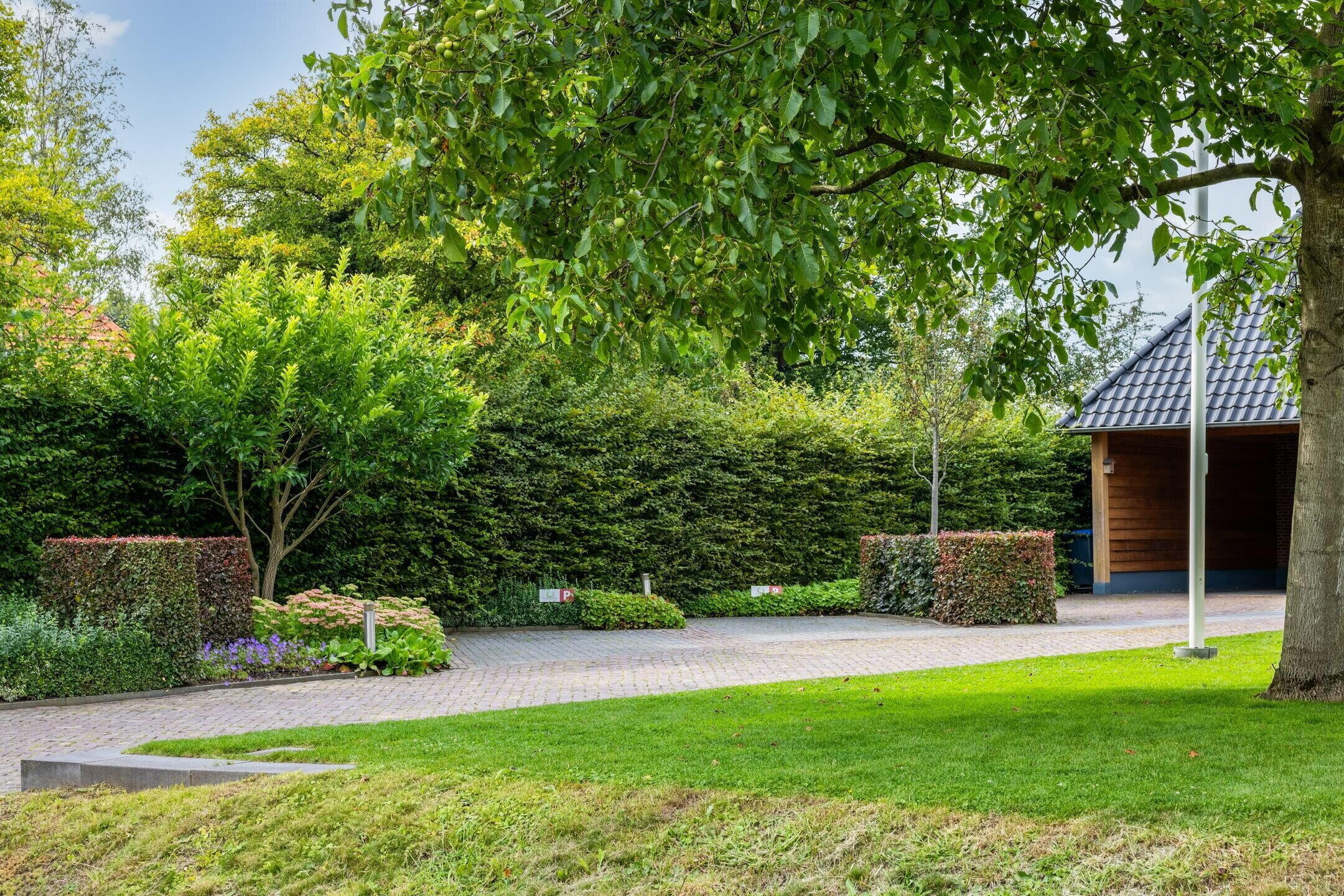 De vrijstaande schuur is net zo degelijk gebouwd als het woonhuis zelf: geïsoleerde spouwmuren, betonnen vloer, hoge kap en een royale zolderverdieping. Onder de kap is ruimte voor twee auto’s en er is een laadpunt voor elektrische voertuigen aanwezig. Aan de achterzijde bevindt zich een praktische overkapping.